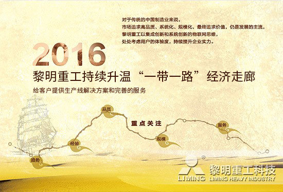 時勢造就英雄。2014年9月,第四屆中國-亞歐博覽會,黎明重工“絲綢之路”計劃開始醞釀和實施,不僅包括在產(chǎn)品方面的強力支持,還包括系統(tǒng)方案設計、組織施工、售后服務、配件供應、客戶培訓的全量,為“絲綢之路經(jīng)濟帶”上的國家和地區(qū)提供無可比擬的產(chǎn)品和服務。拿哈薩克斯坦來說,黎明重工在哈薩克斯坦擁有較大的市場占有率,顎破、反擊破、圓錐破等產(chǎn)品頗受當?shù)乜蛻舻那嗖A。為了給客戶提供的生產(chǎn)線解決方案以及完善的服務,黎明重工在當?shù)爻闪⒘宿k事處,響應客戶的實際需求。隨著“絲綢之路”的經(jīng)濟升溫,再加上黎明重工在亞歐區(qū)域的眾多生產(chǎn)線都已經(jīng)投產(chǎn),獲利顯著,所以越來越多來的客戶把黎明重工列為考察的供應商。哈薩克斯坦只是“絲綢之路”上的一顆明珠,“一帶一路倡議”沿線大多是新興經(jīng)濟體和發(fā)展中國家,普遍處于經(jīng)濟發(fā)展的上升期,合作前景廣闊。公路、鐵路、油氣管道、網(wǎng)絡通信設施等不斷修建,正在形成古絲綢之路上的現(xiàn)代商隊,黎明重工的諸多生產(chǎn)線在這條“絲綢之路”上不斷創(chuàng)造著價值,形成更開闊的氣象。同時,海上絲綢之路上的印尼等國家,黎明重工一直與其保持著友好的信任和聯(lián)系。