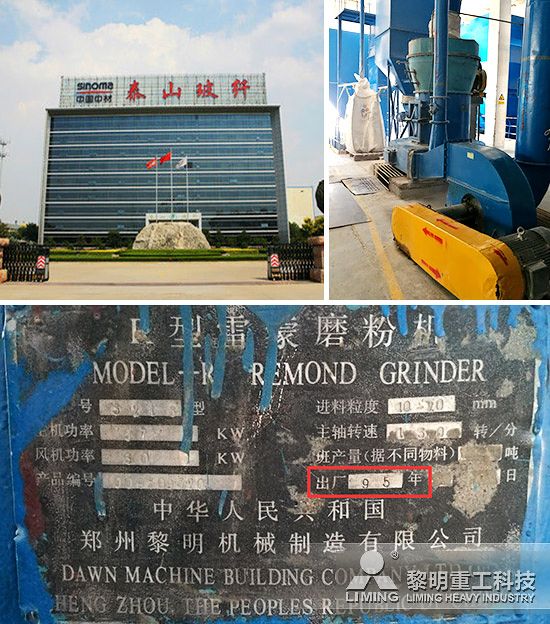 今年的走訪活動(dòng)中,更令人稱道的是:中國(guó)中材泰山玻璃纖維有限公司,一臺(tái)由黎明重工于1995年生產(chǎn),迄今投產(chǎn)21年之久的磨粉機(jī)仍在為客戶效力,并保持正常運(yùn)行。進(jìn)入整潔規(guī)范的客戶生產(chǎn)現(xiàn)場(chǎng),這臺(tái)藍(lán)色的雷蒙磨粉機(jī)正在有條不紊地作業(yè)進(jìn)行中。與目前以灰白為主色調(diào)的新一代磨機(jī)外殼體大氣的外觀不同,雷蒙磨的藍(lán)色機(jī)身顯得清新活力。但是機(jī)身上面斑駁的銘牌依然告訴我們,這已經(jīng)是一員“老將”了。銘牌雖然斑駁,但上面各項(xiàng)功率、型號(hào)及生產(chǎn)日期還清晰可見(jiàn)。通過(guò)上面的文字,我們了解到這臺(tái)R型雷蒙磨粉機(jī)生產(chǎn)于1995年,型號(hào)是雷蒙磨粉機(jī)3216型。在與客戶聊天中,走訪人員了解到這臺(tái)磨機(jī)加工的物料是葉臘石,盡管已經(jīng)使用二十余年,仍然正常運(yùn)行沒(méi)有出現(xiàn)重大問(wèn)題。