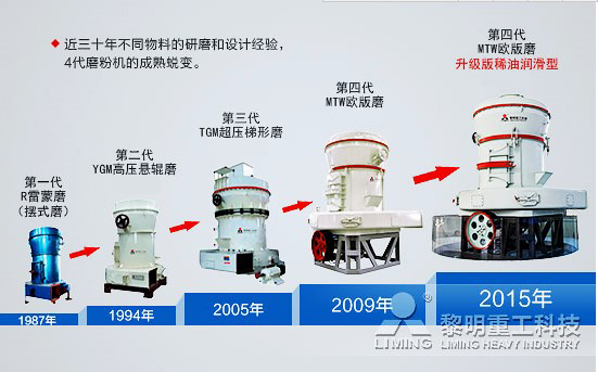 長(zhǎng)期以來(lái),雷蒙磨粉機(jī)作為重要的工業(yè)磨粉設(shè)備,在市場(chǎng)廣泛的使用。黎明重工自1992年起引進(jìn)生產(chǎn)這款具備,并積累了豐富的經(jīng)驗(yàn)。然而,跟隨模仿只能在別人身后亦步亦趨,唯有創(chuàng)新才能成為者。于是,黎明重工敢破敢立大膽創(chuàng)新,從1987年的R型雷蒙磨到1994年的第二代YGM高壓懸輥磨,從2005年的第三代TGM超壓梯形磨,到2009年第四代MTW歐版磨的重磅推出,再到2013年的MTW歐版磨升級(jí)版問(wèn)世,黎明重工在磨粉機(jī)上的工藝造詣日臻深厚,不斷完善升級(jí)的磨粉機(jī),為礦產(chǎn)品物料的粉磨加工提供更優(yōu)選擇。