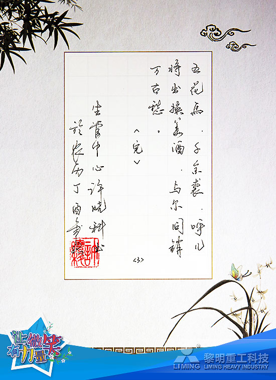 為豐富員工的精神文化生活,營造奔騰鬧嗨的企業文化氛圍,一年一度的書畫、攝影大賽如期舉辦,成為黎明重工一項具備良好特色的持續性主題文化活動,如今已是第六屆。每一屆都能得到企業內部攝影、書法愛好者的熱烈響應,并收到眾多能夠展現企業實力及人文精神的好作品。400多幅攝影、書畫作品,在綻放自身多面才藝的同時,以藝術的特別視角再現和解讀了黎明重工人文精神內涵。