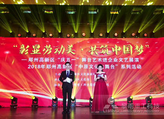 “草木萌發,春山可望”,4月25日下午,生機勃勃、綠草如茵的黎明重工總部企業基地,迎來了由鄭州高新技術產業開發區文化旅游局主辦的彰顯勞動美·共筑中國夢”——鄭州高新區“慶五一”舞臺藝術進企業文藝展演的演出,華麗的燈光、大氣的舞臺裝置、高質量的演出陣容,為黎明重工員工帶來一次燈光舞蹈音樂表演交融的美妙體驗,這也是黎明重工收到的關于五一、關于“勞動創造美和幸福”的一份大禮。感謝此次活動,讓我們共享區域文化成果和文化魅力!