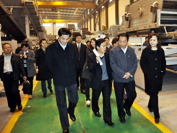 在產品展示區,李主席對公司自主研發的移動破碎站產生了極大的興趣,這種一體化的作業方式較大程度的優化了作業空間,消除了環境帶給破碎作業的障礙,在城市建筑垃圾的處理方面有著廣闊的應用空間。李主席熱情地鼓勵我們加速市場推廣、擴大生產應用,為中原經濟區建設做出更大的貢獻。