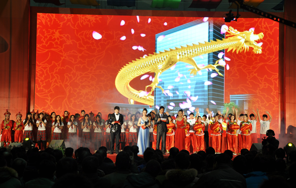 本次演出規模宏大,歌舞、小品、朗誦精彩紛呈,在LED舞臺背景屏與專業燈光的配合下,展現了生動絢麗的舞臺效果。物業辦公室的《三句半》詼諧幽默;《光影黎明》用光影的特別表現,展示了黎明的發展之路;《假面舞會》翩翩的舞步領我們進入了美輪美奐的場景;《勇者無懼 海闊天空》在深情的朗誦中,把我們帶向充滿希望的2012;精心準備的抽獎環節更是掀起一陣陣高潮,現場熱烈異常。