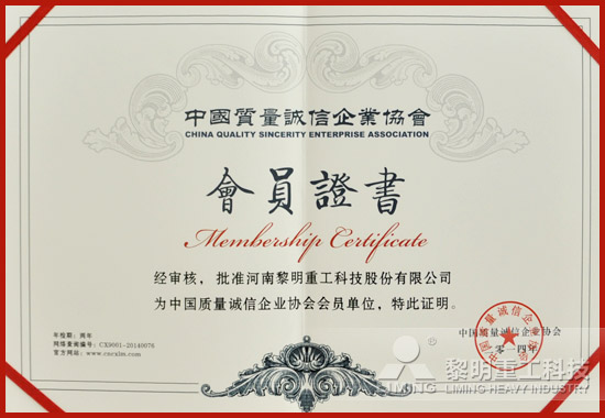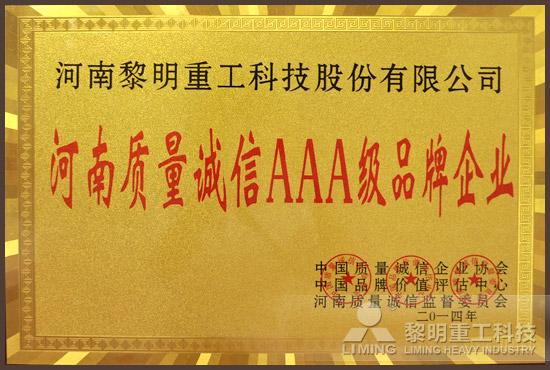 為加快企業(yè)質(zhì)量信用體系建設,營造誠實守信的市場環(huán)境和信用環(huán)境,引導企業(yè)建立質(zhì)量誠信機制,河南質(zhì)量誠信監(jiān)督委員會組織河南省質(zhì)量信用A等工業(yè)企業(yè)評價工作。經(jīng)過資料審查、專家組評審、征求意見及通過工商局和質(zhì)監(jiān)局進行調(diào)研有無產(chǎn)品質(zhì)量和舉報方面的問題等一系列嚴格的評審之后,黎明重工一舉拿下“河南省質(zhì)量信用AAA級品牌企業(yè)”。與此同時,集團公司申請加入“中國質(zhì)量誠信企業(yè)協(xié)會”,成為該協(xié)會的會員單位。